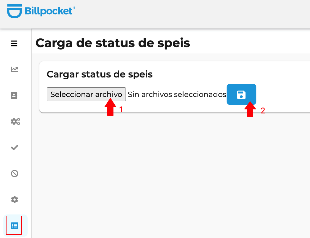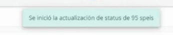 - Dirígete al submódulo Modificación de speis, seleccionas el archivo y das clic en el ícono de guardar, inmediatamente se sube el archivo y se recibe un label con mensaje de inicio de actualización de estado de los SPEIS.