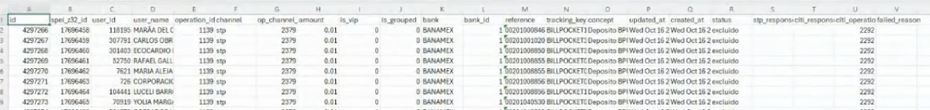 - spei ID: obtiene del archivo reporte de operación columna D, campo spei_ z32_id de los que tienen estado excluido.